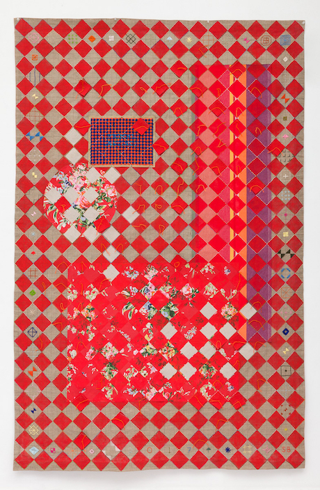 Working somewhere between art, life and decoration across painting, textiles and installation this body of works mediates my tangle of ideas and memories of house, home and agency in domestic space and its relationship to my experiences when installing exhibitions. Placing the work in the gallery space to suggest a domestic interior I hope to implicate the viewer and their own immediate context in my work. As it teeters on the edge of prettiness, with tongue in cheek, I have named the exhibition after the fallen happy homemaker Martha Stewart. In this body of work, I seek to interrogate my place as an aging female artist/compulsive decorator.