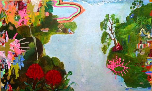Magnetic Island Inner Earth with Waratahs, 2013. Acrylic on wood, 13.5 x 22cm.