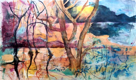 Opening into a new day, 2017, acrylic paint on canvas, 112 x 183cm.