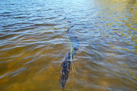 Drift, 2017, foraged reeds, Icelandic wool, driftwood, installation documentation, dimensions variable