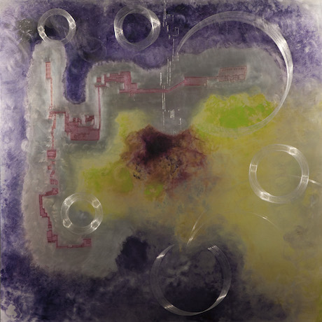 1. Vitruvian purple, 2016, drawing & scratch hologram on aluminium, 120 x 120cm