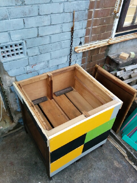 Progress on the sustainable project has been hampered by endless rainfalls. Ciaran Begley donated the old desk utilised in his recent ‘bird of doom’ exhibition at AirSpace Projects to the project and Sarah is currently transforming it into a fabulous worm farm. This was how it looked a few weeks ago.