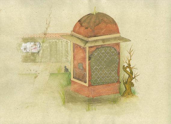 Untitled. 2015. Khariya, stone colour with gold leaf and liquid gold (Hilkari) on Wasli (hand made paper), 30.5 x 40.5cm. Image courtesy of the Artist.