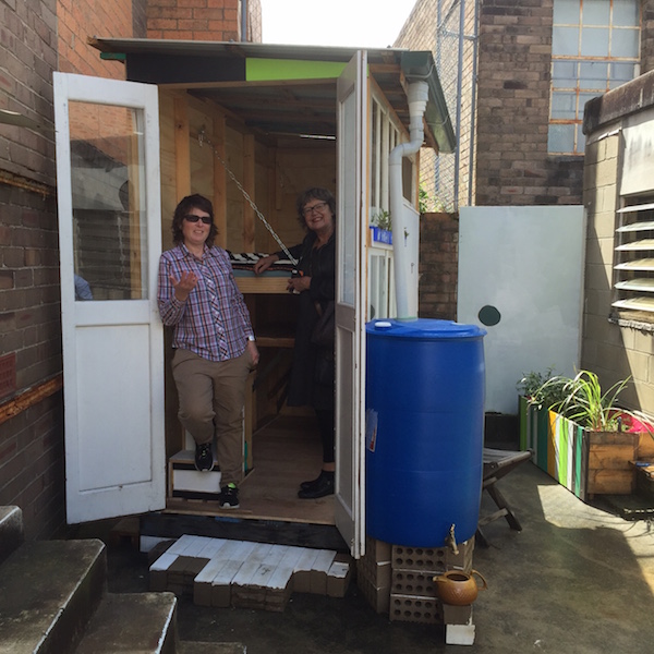 Girl Shed III is the third iteration and will be the last part to complete the sustainability garden project in the courtyard of AirSpace Projects. Girl Shed is a ramshackle free-form shed designed to provide a creative space and water catchment for the garden. Over the course of the exhibition Sarah Newall will be living onsite creating art that will change and develop the exhibiting space as well as doing daily menial tasks: cleaning, cooking, eating and gardening.